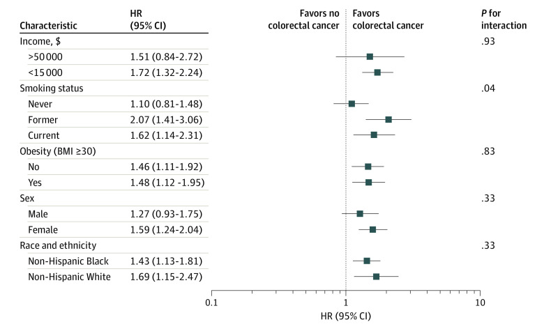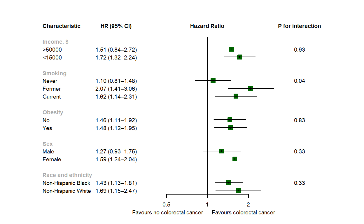 Characteristic (95% Cl) colorectal cancer colorectal cancer interaction